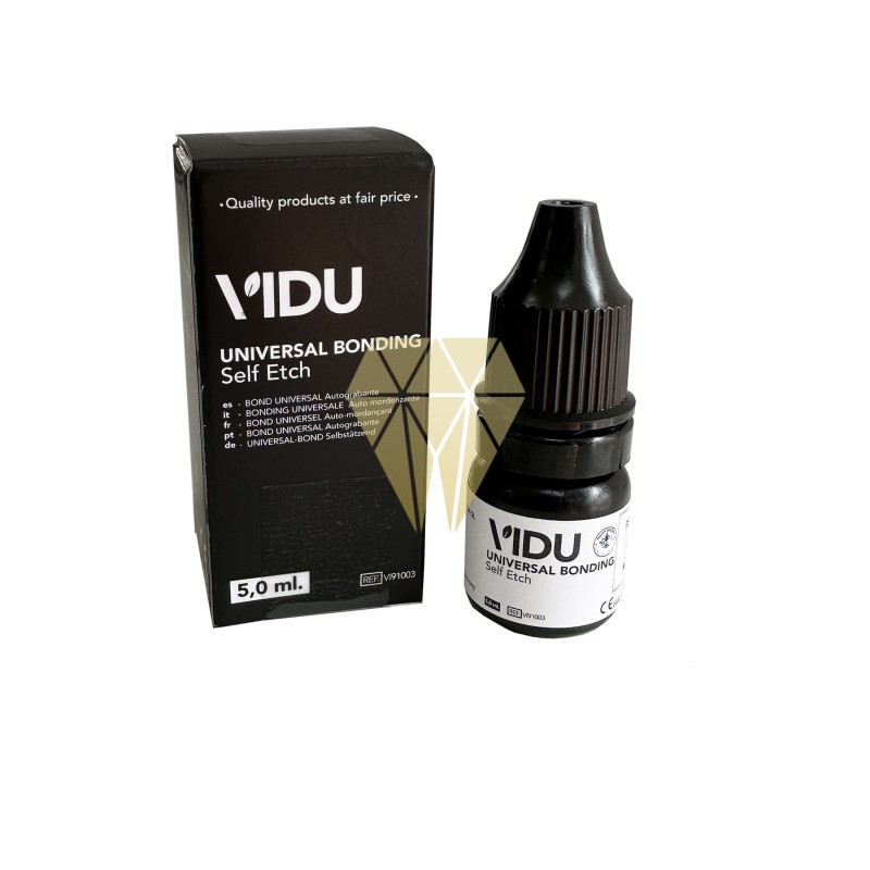 Adhesivo dental autograbante de 5 ml para restauraciones sobre esmalte y dentina. Características del adhesivo autograbante VIDU: - Indicado para la técnica de restauración adhesiva. - Adhesivo monocomponente, autograbante y fotopolimerizable. - Restauraciones de composite sobre esmalte y dentina. - Permite ahorra tiempo, ya que la aplicación se realiza en un solo paso, sin grabado previo. - Material compuesto de cementación, metal o amalgama. - Útil también como sellador de la dentina. - Fabricado en Alemania. - Contenido: 5 ml. Respetuoso con el medio ambiente: Plastic Neutral. Certified by RePurpose. Packaging 100% reciclable: Para el embalaje de este producto se ha utilizado cartón de bosques controlados y las jeringas son de PEAD reciclado, siempre garantizando las máximas condiciones de calidad e higiene en los productos.