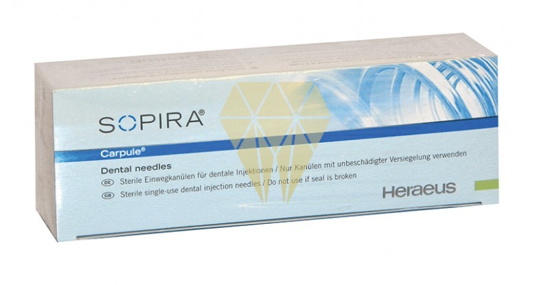 Sopira Carpule son agujas de anestesia que se definen por un terminado en acero de primera clase y un diseño de última generación. Esta solución satisface las exigencias de una amplia gama de formas de anestesia dental y es compatible con todas las jeringas estándar dentales. Así mismo reducen el dolor inicial y evitan la concentración de tejido debido al recubrimiento de silicona. Proporciona un manejo seguro gracias a su alta elasticidad. Contiene 1 caja de 100 unidades de Sopira Carpule agujas de 27 gr de color naranja (0,4 x 25 mm).