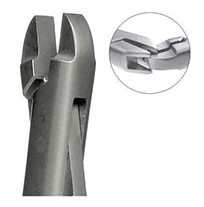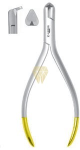 El alicate de corte distal (TC) de 15 cm es un instrumento de ortodoncia diseñado para cortar los extremos de los arcos y alambres dentro de la cavidad bucal de forma precisa y segura. Incorpora insertos de carburo de tungsteno (TC), lo que le proporciona mayor dureza, durabilidad y capacidad de corte. Su diseño permite retener el fragmento cortado, evitando que el paciente lo ingiera o inhale. Fabricado en acero inoxidable, es resistente y apto para esterilización.