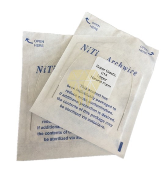 Arcos de acero estético Euro II inferior y superior, a elegir. El alambre niti es ideal para la fase inicial del tratamiento ortodóntico, superelástico, efecto de memoria de forma. Libera fuerzas ligeras y continuas. Recubierto con un material de color similar al diente.