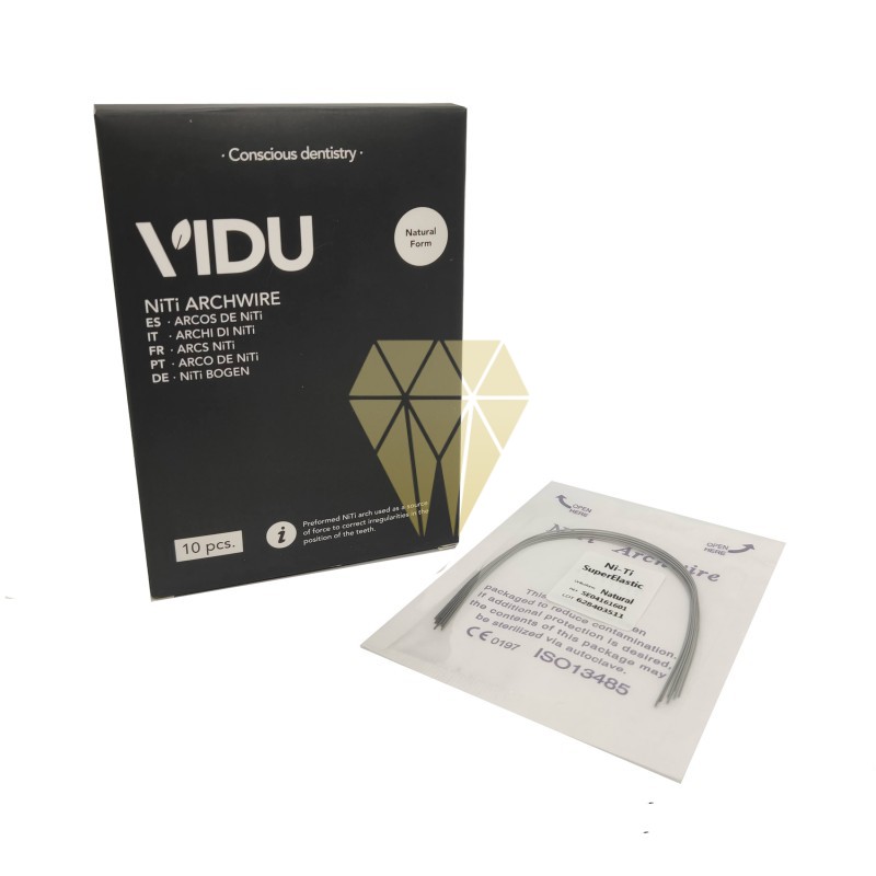 Los Arcos NiTi VIDU están fabricados con aleación de niquel titanio sistema con un acabado extra suave para reducir la fricción y mejorar el deslizamiento en la ranura del bracket (slot). Los Arcos NiTi VIDU vienen en forma Natural y Ovoide en todas las medidas superior e inferior. VIDU dispone de una amplia gama de productos en su línea de ortodoncia, productos de la más alta calidad que ofrecen un rendimiento predecible e incomparable.