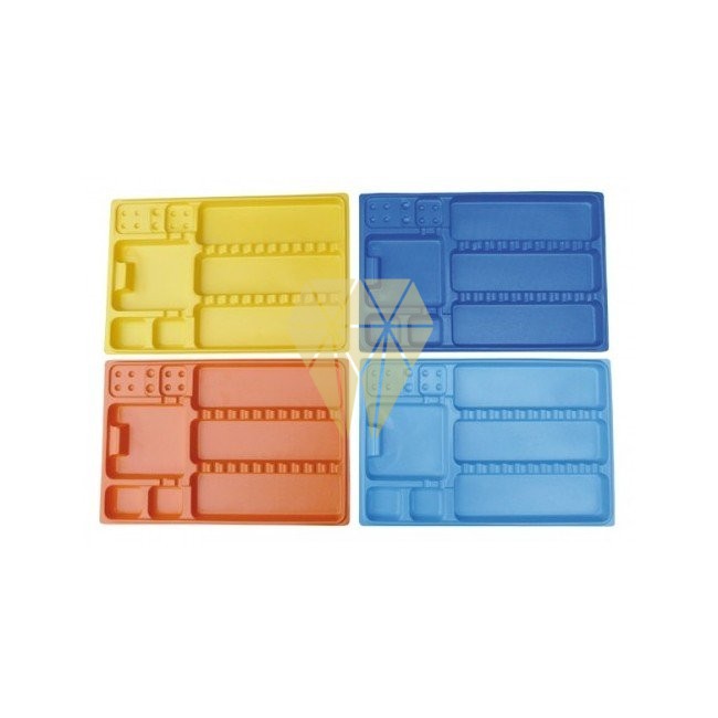 Bandejas de plástico desechables de colores, compartimentadas. Utilización por separado o colocadas sobre las bandejas Standard de Aluminio o Acero. 28 cm x 18 cm