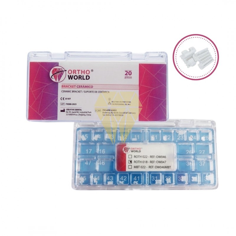 Bracket cerámico estético, confeccionado con polvos de alúmina policristalina dándole una apariencia más traslucida.