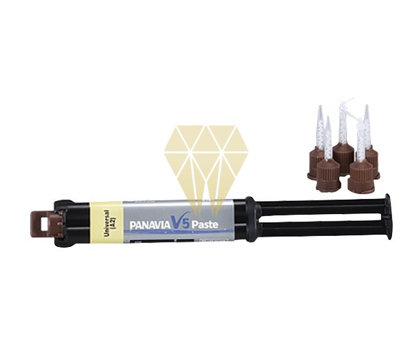 Cemento de composite PANAVIA™ V5 es la opción ideal. Cobertura amplia: Cementación de coronas y puentes inlays onlays cementación de carillas férulas cementación de restauraciones protésicas sobre pilares de implantes cementación de postes y muñones. Aplicación Automix. Espesor del film bajo. Fácil eliminación de exceso de cemento. Punta Endo mejorada para facilitar el acceso root canal. Alta fuerza en unión. Alta estabilidad mecánica. Liberación de flúor.