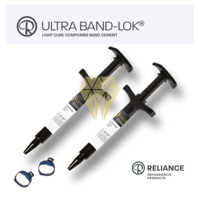 Ultra BandLok® está diseñado para el uso como cemento de banda ortodóntica y para reconstrucciones oclusales. Fotopolimerizable.Color azul para facilitar la limpieza de exceso de pasta.No se desgasta el material en mezclas: es un sistema monocomponente. Activado por luz: no hay límites de tiempo de trabajo.Polifacético: Además de cementar bandas, se puede utilizar para cementar brackets, retenedores linguales y aparatos acrílicos.Nota informativa: Fecha de caducidad primeros 4 dígitos = año últimos 2 dígitos = mes p.ej. 201004 = abril de 2010.