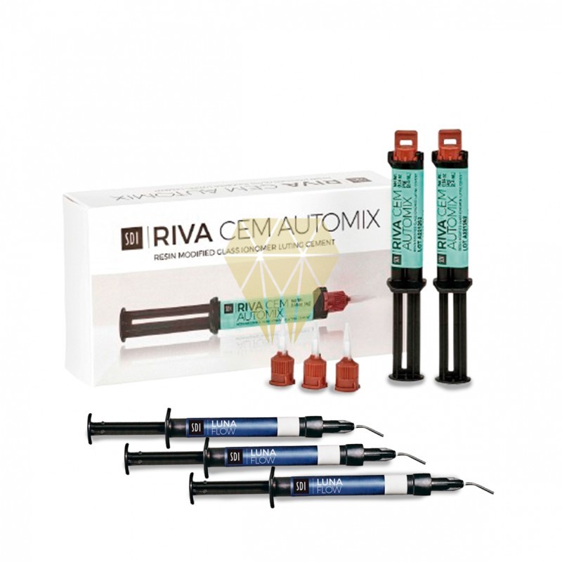 Riva Cem es un material obturador a base de ionómero de vidrio de pasta/pasta con resina modificada, liberación de flúor, radiopaco y autocurado. Está indicado para la cementación permanente de restauraciones cerámicas de base metálica y núcleo fortalecido y aplicaciones ortodónticas. Riva Cem incluye la opción adicional de curado mediante luz, para de esta forma permitir la retirada temprana de los excesos de cemento, una perfecta adhesión dental, liberación de flúor y una fluidez ideal para la cementación. Riva cem está disponible en un tono universal (amarillo claro)
