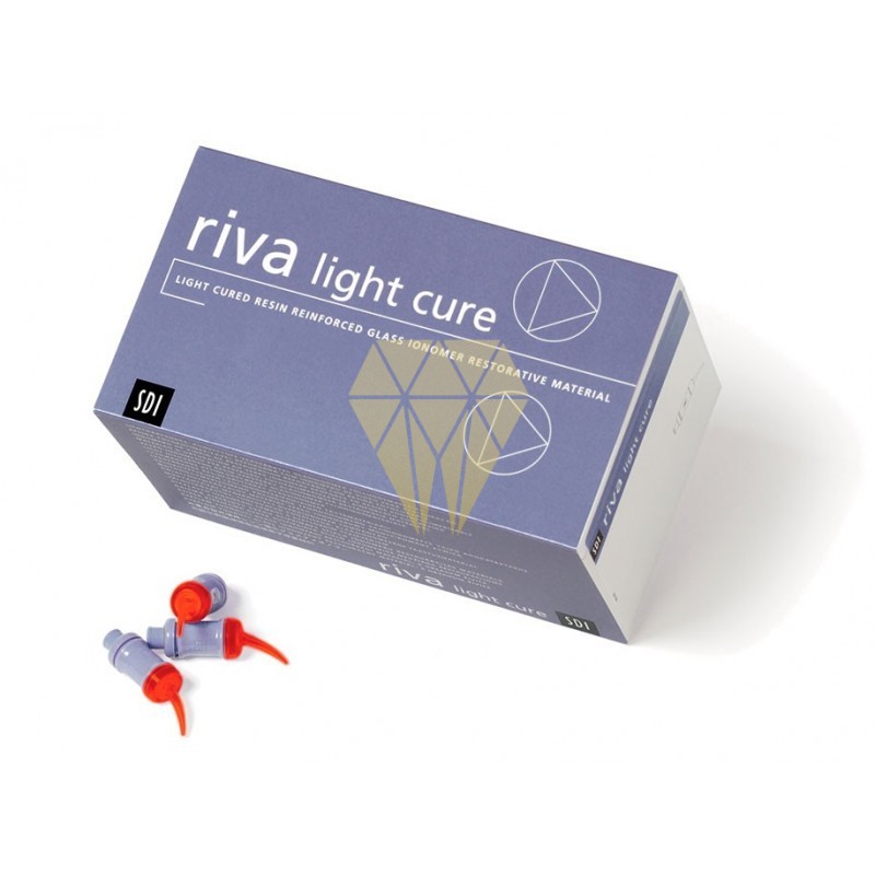 RIVA LIGHT CURE 50 Cápsulas Material restaurador a base de ionómero de vidrio con verdadera estética. CARACTERÍSTICAS: - Combinación de las ventajas GIC y de las ventajas del composite - Excelente manejo - Buena adaptación marginal - Bioactive proprietary ionglass™ technology Riva Light Cure utilises SDI’s proprietary ionglass™ filler developed by our glass technologists. ionglass™ is a radiopaque, high ion releasing, bioactive glass used in SDI’s range of glass ionomer products. Riva Light Cure releases fluoride to assist with remineralisation of the natural dentition. - Fabulosa estética amplia gama de tonos disponibles, Riva Light Cure permite efectuar restauraciones con apariencia natural y efecto camaleón. - Mayor estabilidad de color Riva Light Cure tiene una excelente resistencia a manchas originadas por el té oscuro y vino rojo. Riva Light Cure absorbe cerca de la mitad de mucho colores provenientes de estas soluciones que contienen ácidos taninos. - Resistencia al desgaste a largo plazo La dureza de la superficie de los cementos a base de ionómero de vidrio reforzados con resina implica una buena resistencia al desgaste a largo plazo. A mayor dureza de la superficie, habrá mayor resistencia a las fracturas permanentes de la superficie. - Alta resistencia a la flexión La alta resistencia a la flexión garantiza un reducido índice de agrietamiento y falla en la flexión. Riva Light Cure tiene una excelente resistencia a la flexión. - Punta de seguridad color naranja de la lámpara Riva Las cápsulas Riva Light Cure tienen una boquilla transparente color naranja. Ésta evita que la pasta fragüe cuando opere la lámpara entre cada aplicación. - Procedimiento sencillo Riva Light Cure es rápido y simple de aplicar. No requiere utilizar el procedimiento de adhesión, ya que se adhiere químicamente al diente y proporciona el intercambio de iones para lograr una dentición desmineralizada. - No contiene Bis-fenol A u otros derivados Riva Light Cure no contiene Bis-fenol A o alguno de sus derivados. Use este producto en sus pacientes con absoluta confianza y tranquilidad. CONTENIDO: - 50 Cápsulas
