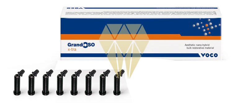 Material de restauración nano-híbrido, bulk, estético. GrandioSO x-tra, el material de restauración nano-híbrido en bloque ("bulk-fill"), aúna un trabajo rápido y resultados estéticos. Con un contenido de relleno del 86% en peso, una contracción volumétrica de solo 1,4% en vol. y un bajo estrés de contracción, GrandioSO x-tra es un composite bulk-fill de alta calidad de primerísima categoría. GrandioSO x-tra ofrece también los colores A1, A2, A3 y un color universal restauraciones parecidas al diente y duraderas. El color universal U dispone de un tiempo de polimerización especialmente corto de solo 10 segundos y está especialmente indicado en odontopediatría para restauraciones de dientes de leche. GrandioSO x-tra es adecuado para restauraciones de dientes posteriores de las clases I y II, para utilizar como base en cavidades de las clases I y II, restauraciones de la clase V, bloqueado y ferulización de dientes móviles, sellado de fisuras ampliadas, restauraciones de dientes de leche así como para la reconstrucción de muñones.