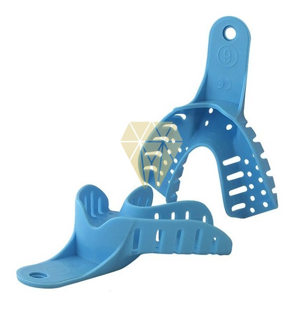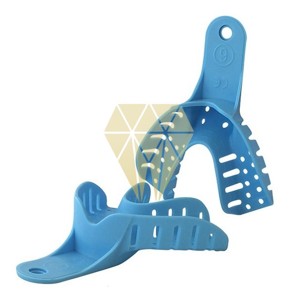 Fabricadas en material plástico rígido de color azul. Perforadas y con una perfecta anatomía. Disponible en varios tamaños incluyendo parciales. Pueden ser utilizadas con cualquier material de impresión. Varios tamaños disponibles.