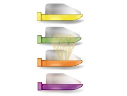 Protección para las preparaciones de clase II. Su diseño único combina una cuña plástica interdental con una cinta de acero inoxidable empotrada en vertical que defiende las superficies adyacentes del daño accidental causado por la fresa. Fáciles de insertar. No se mueven. Evitan interferencias. Usar cuñas Fender antes de la preparación facilita la colocación de la matriz y el establecimiento de los puntos de contacto. Para trabajar de manera segura y rápida.