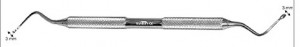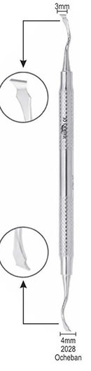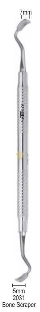 La cureta raspador de hueso (punta cuadrada y redonda) es un instrumento odontológico utilizado en cirugía oral para la eliminación y remodelado de tejido óseo. La punta cuadrada permite un raspado más agresivo, mientras que la redonda facilita el acabado y la limpieza de superficies. Fabricada en acero inoxidable, es resistente, duradera y fácil de esterilizar.