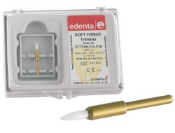 Instrumento para cortar tejidos, como alternativa al bisturí y la electrocirugía. El instrumento rotativo para cortar STT, fabricado en cerámica, separa el tejido sin generar calor. Se utiliza para: - modelado de la encía - apertura del surco subgingival para la toma de impresiones - descubrimiento de cavidades profundas - remoción de tejido de granulación inter-radicular - remoción de hiperplasias gingivales - descubrimiento de implantes intraoseos y de dientes retenidos. La punta de cerámica especial coagula los vasos sanguíneos y reduce la hemorragia. Como el calentamiento es mínimo se evita la necrosis. Permite un trabajo rápido y seguro en la encía.