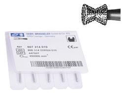 fresas de diamante y carburo-tungsteno de alta calidad. Acabado muy uniforme, de bajo desgaste y duración muy superior a otras marcas (2-3 veces más). Eliminación de restos mejorado y optimas propiedades de enfriamiento. Tipos de Turbina, Contra-ángulo y Pieza de mano.Caja de 6 unidades.