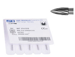 Instrumento de acabado en carburo de tungsteno tipo Q para un trabajo eficiente en composite labial y vestibular. ISO: 102 - Revolución Máxima: 450000 rpm - Forma: CÓNICA REDONDEADA Diametro 016 - Mandril TURBINA 0 Tipo de Grano: 0 - Aplicación: Pulido Composite Milhojas - Cantidad Embalaje: 5 ud