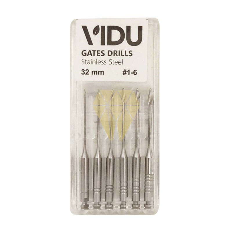 Las Fresas Gates de Vidu están fabricadas en acero inoxidable, son utilizadas para ensanchar la entrada del canal radicular, facilitando así la instrumentación manual y mecánica.