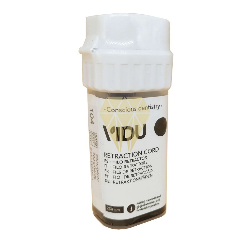 El Hilo Retractor VIDU está fabricado 100% en algodón, con una estructura de malla entretejida que ejerce una fuerza suave y continua hacia el exterior después de su colocación. El hilo retractor de Vidu se utiliza para un rápido desplazamiento de los tejidos previo a tomas de impresión y también puede ser usado para llevar soluciones de sulfato férrico al sector subgingival.