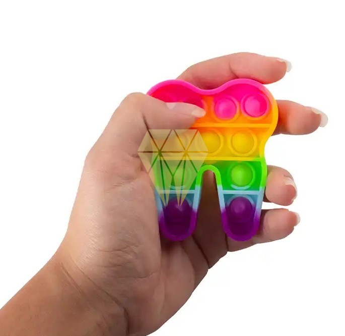 El Popitdent Bader es un divertido y práctico juguete antiestrés que incorpora diferentes colores y texturas, diseñado para estimular los sistemas visuales y táctiles. Su uso favorece el desarrollo sensorial y motor en la infancia, así como la socialización entre los más pequeños.