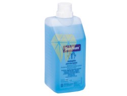 Solución para la desinfección rápida y eficaz para las manos. Frotar sin necesidad de agua. Dermoprotector. Antiséptico por frotación, para las manos, con base alcohólica y protector para la piel. Propiedades del producto: - Eficaz frente a un amplio número de microorganismos y virus. - Desinfección quirúrgica de las manos en 3 minutos. - De acción rápida y con efecto prolongado. - Especialmente suave para la piel debido a sus aditivos para el cuidado de la piel. - Reduce la flora transitoria en un 99,99% en 30 segundos. - Muy bien tolerado para la piel, incluso en usos muy prolongados. - Eficaz contra flora residente en la piel. - Puede usarse en cualquier lugar y momento sin precisar un lavabo o toalla. Actividad microbiana. Bactericida, fungicida, inactivante vírico conta HBV, herpes (tipo 1 y 2), HIV, papovirus, rotarius y vaccinia. Es de destacar que Sterillium ha demostrado su acción inactivadora del virus de la hepatitis B en pruebas con primates. Se ha podido demostrar que una muestra de sangre tomada de una persona enferma y que tenía con certeza VHB infeccioso, después de haber sido tratada con sterillium no ha producido infección en los animales sobre los que se realizaron las pruebas. Esta constatación no la ha podido hacer hasta la fecha ningún otro antiséptico para manos. La gran eficacia de Sterillium se debe a los compuestos siguientes: Compuestos alcohólicos. Sterillium contiene una combinación de propanol 2 y propanol 1. En concreto, respecto a las fórmulas de etanol, las partes de alcohol en Sterillium tienen presiones de vaporización, lo que hace que el producto sea de acción más persistente en las capas superficiales de la piel, que son el verdadero lugar de permanencia de la flora residente. Compuesto Bactericida. El principio de acción remanente de Sterillium reside, principalmente, en el compuesto etilsulfato de mecetronio. Esta sustancia, un amonio cuaternario, se caracteriza por su indudable propiedad adsortiva y su acción en el nivel de las superficies de separación. Su estructura química le permite penetrar en las capas córneas (stratum corneus). Así se forma una �?barrera�? química en la capa córnea de la piel, contra los gérmenes situados más profundamente. Los microorganismos alcanzados son fijados de forma adsortiva en la piel. Con esta capa, la flora cutánea permanece protegida. Areas de aplicación. Una de las mayores ventajas de Sterillium radica en que puede utilizarse en cualquier lugar, sin necesidad de agua, toalla ni lavabo. Sterillium está indicado para la desinfección higiénica y quirúrgica de las manos. Se usa en cualquier área donde la higiene es relevante, como Clínicas Dentales, centros sanitarios,en las unidades de cuidados intensivos, quirúrgicas, etc.. Modo de empleo: Sterillium se aplica sin diluir sobre las manos secas. Debe asegurarse que estas se mantengan humedecidas mientras dura el proceso de aplicación. Desinfección higiénica de manos: Aplicar al menos 3 ml. de Sterillium sobre las manos secas y frotar durante un mínimo de 30 segundos. Desinfección quirúrgica: Aplicar al menos 10 ml. de Sterillium en pequeñas cantidades, sobre manos y antebrazos y frotar durante un mínimo de 3 minutos.