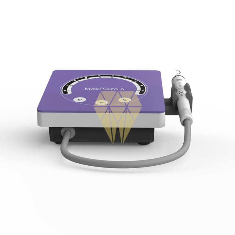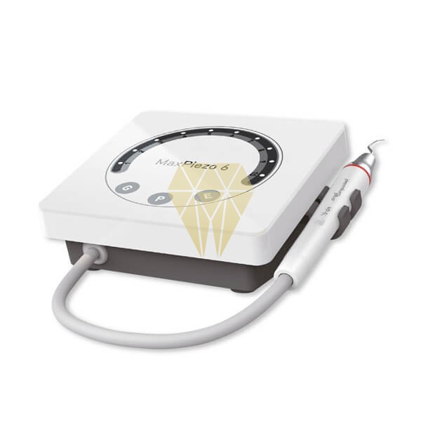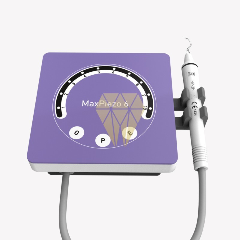 El MaxPiezo6 integra los modos G (supragingival), P (periodoncia) y E (endodoncia) en un único equipo, ofreciendo versatilidad y precisión en todo tipo de tratamientos. Equipado con tecnología ultrasónica de 28 kHz, garantiza una eliminación de cálculo eficaz tanto supra como subgingival, manteniendo siempre el máximo confort para el paciente. Su rendimiento estable permite trabajar con seguridad y precisión en procedimientos exigentes.
