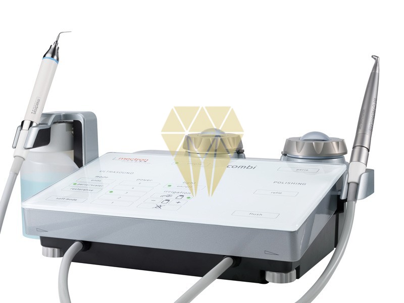 El ultrasonidos de Combi Touch Perio de Mectron posee un sistema de riego flexible: a la red hídrica de la clínica o a la botella de 500 ml (no gotea ni tiene fugas). Con este sistema de irrigación iluminada se puede utilizar tanto agua como soluciones terapéuticas (p.ej. H2O2, clorhexidina). Incluidas soluciones muy agresivas como el hipoclorito de sodio para el tratamiento endodóntico. Su pieza de mano ultrasónica con foco de luz LED, giratorio 360º, permite graduar el foco directamente a la punta del inserto, sin importar su forma y en cualquier situación. El aeropulidor de Combi Touch Perio cambia facilmente durante el tratamiento entre el pulido de aire subgingival al supra presionando el botón profiláctico o perio. Su protección contra obstrucciones se enciende al mismo tiempo que la unidad, limpiandose el tubo con un suave y continuo flujo de aire. Sus recipientes de polvo removibles se intercambian con facilidad gracias a la función de refill. Las boquillas spray del pulidor de aire facilitan un mejor acceso: las de 90° y 120° de angulación - están indicadas para uso supra y subgingival en bolsas periodontales de hasta 5mm de profundidad. La de Perio equipada con la punta de Perio Subgingival proporciona un acceso óptimo en bolsillos más profundos de más de 5 mm. Las puntas Perio Subgingivales son estériles y de un solo uso. Todas las boquillas se conectan facilmente mediante un clic a la pieza de mano de pulido de aire gracias a un sistema de conexión de seguridad. Incluye 1 inserto scaler y 1 inserto perio. Con control de protección automático (APC) que muestra las causas de la interrupción del trabajo. El carrito universal EAA para clínica de Mectron con 2 estantes de baldas y base, está esmaltado en blanco y ofrece una total movilidad a los dispositivos de mesa. Gracias a su compartimento de cables de fácil acceso, las líneas de suministros permanecen ocultas. Permite una conexión fácil y a la altura de la bandeja principal del suministro de energía y de la toma de agua y aire. El práctico carrito universal EAA de Mectron posee una altura de 85cm y se desliza suavemente. CARACTERISTICAS Combi Touch Perio, dispositivo multifuncional: pulidor por aire y ultrasonidos, todo en uno. Tratamiento profiláctico completo, removiendo cálculos, manchas y biofilm. Limpieza de la superficie implantológica. Modo Suave y Pulso. Pantalla táctil de cristal, fácil limpieza y desinfección. De manejo sencillo e intuitivo. Sistema de riego flexible: red hídrica o botella iluminada de 500ml. No gotea no fugas. Sistema de irrigación flexible, tanto agua como soluciones terapéuticas. Pieza de mano con LED, con foco giratorio 360º. Con control de protección automático (APC). Boquillas de 90º, 120º y Perio. Puntas Perio Subgingivales estériles y desechables. Voltaje: 100-240 V CA 50/60 Hz. Max: 90 VA. Frecuencia: De 24 KHz a 36 KHz. Suministro de agua: Presión de trabajo de 1 a 6 bar. Suministro de aire: Presión de entrada entre 4 y 8 bar. Funciones: Endo, Perio/Scaler, Restauración, Modo Suave. Niveles de potencia: de 1 a 5. Irrigación en la parte de ultrasonido: ajustable en la pantalla táctil 7 niveles de flujo: de 1 (5 ml / min) a 7 (30 ml / min). Irrigación parte de pulido: regulación continua a través de la perilla. Peso: 4,8 kg. Dimensiones: 410 x 260 x 145 mm. Carrito universal EAA. 2 baldas + base. Esmaltado en blanco. Con conexión eléctrica, toma de agua y aire. Preparado para el nuevo Combi Touch. Compartimento de cables de fácil acceso. Conexión a la altura de la bandeja principal. Líneas de suministros ocultas. Deslizamiento suave. Medidas (LxAxA): 48 cm x 46cm x 85 cm. Altura: 85cm. Peso: 29kg. CONTENIDO Combi Touch Perio contiene: 1 unidad Combi Touch. 1 pieza de mano ultrasónica LED. Tapón de seguridad gris. 1 cabezal spray aeropulidor de 90º. 1 cabezal spray aeropulidor de 120º. 1 cabezal spray aeropulidor PERIO 40 Puntas perio subgingivales, desechables. 1 llave dinamométrica K6. 1 llave dinamométrica K9. 1 inserto scaler: S1-S 1 inserto perio: P10 1 botella de 500 ml. 1 botella de polvo de profilaxis de 250g. 1 botella de polvo de glicina de 160g. 1 carrito.