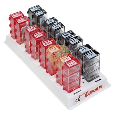 Las Matrices Coform se utilizan tanto para restauraciones de ángulo como para restauraciones compuestas alrededor de los bordes incisales difíciles y fracturas. Existen varios tamaños para piezas del sector anterior, caninos y primeros molares. Están hechos de plástico de celuloide y no se adhiere al material compuesto. Se ajusta fácilmente a la dentición.