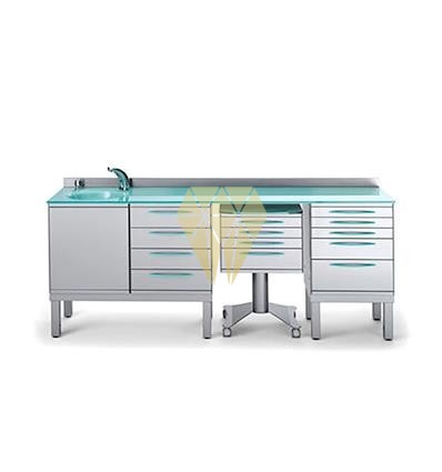 MOBILIARIO CONJUNTO AUX.METALICO SOBRE A. INOX C/GRIFO Y LAVABO