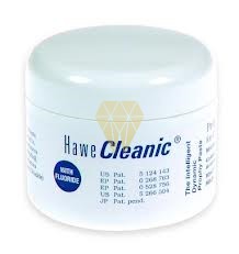 Con partículas abrasivas �?inteligentes�?que se transforman durante su aplicación de granulacin gruesa a fina.Con flor. Hawe Cleanic:Pasta de profilaxis con partículas abrasivas inteligentes que se transforman durante su aplicación pasando de granulacin gruesa a fina. Por esto Cleanic tiene al principio una accin de limpieza y a continuacin una de pulimento. Con una gran fuerza de limpieza se consigue a la vez no desgastar el esmalte. Presentado en un kit con 200 grs de pasta con Flor sabor a menta, contenedor y tacitas anulares portapasta, esterilizables hasta 140.