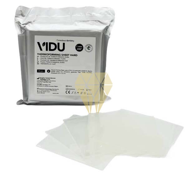 Las placas termoplásticas dentales VIDU están hechas pensando en el uso dental. Fáciles de preparar, flexionar y recortar, pero manteniendo la forma inicial y soportando las fuerzas masticatorias durante un largo periodo, estas placas termoplásticas de alta calidad son una opción ideal para su práctica diaria. La férula rígida VIDU mantiene los dientes en su posición después de la cirugía o cualquier otro método de realineación, minimizando el riesgo de recaída después del tratamiento de ortodoncia con un resultado estético.