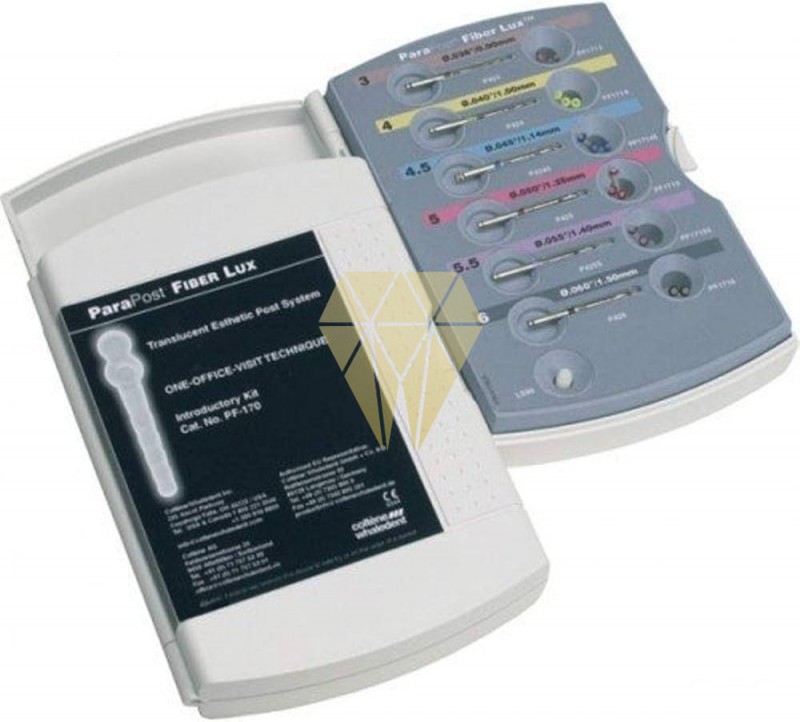 Para - Posts Fiber Lux es un poste nuevo de resina. Sus traslucidez le hace ideal para estética restauraciones libres de metal. Su diseño del cabezal redondo reduce el stress. Apreciará la fuerza y belleza de este nuevo poste. CONTENIDO : 10 postes surtidos: 2 x PF 171/3 + 3 x PF 171/4 + 3 x PF 171/45 + 2 x PF 171/5 + 2 x PF 171/55 + + 6 fresas