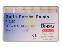 Puntas de guttapercha standard. Contenido 6 tubos x 20 unidades: 120 unidades.