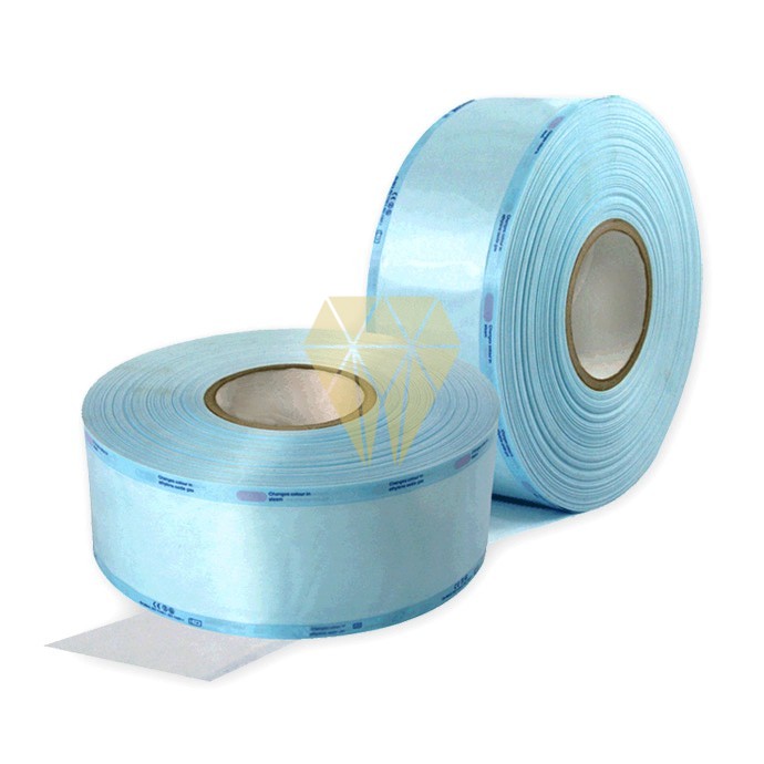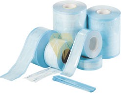 Rollos para esterilización de papel medical blanco de alto gramaje y doble capa de película celeste enpoliestireno/polipropileno. Tres soldaduras laterales de canales impermeables y homogeneos para la máximaprotección micróbica. Contienen indicadores químicos de viraje para esterilizaciones de vapor o de EtO gas (óxido de etileno). Pelabilidad apropiada sin emitir fibras del papel o desgarramiento del papel al abrir el envase.Completamente conforme con la directiva 93/42/EEC (y posterior enmienda 2007/47/CE) y la norma EN 868. Caja de 5 rollos.