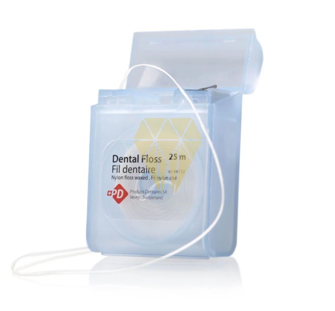 El hilo dental de nylon está indicado para los contactos interdentales muy estrechos y bajo la línea gingival. Se ha diseñado y fabricado especialmente para proporcionar una gran resistencia a las roturas.