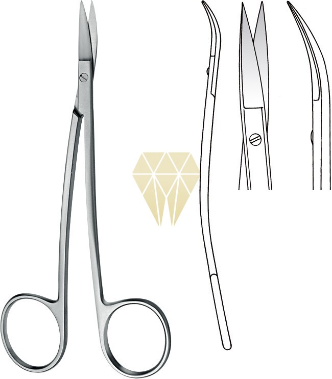 Tijera para encía La Grange KLS Martin. Forma "S". Fácil cogida de la bandeja quirúrgica. Mejor acceso a zonas difíciles. Microdentado en una hoja cortante. Acero satinado antireflejo para evitar destellos lumínicos. Vista menos cansada. Longitud 11'5 cms. Envase.- 1 unidad.