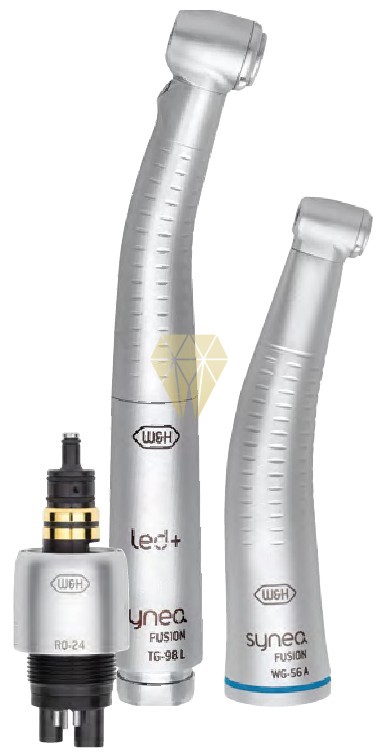 Contra-ángulo 1:1, single spray, dimensión cabezal Ø 9,5 mm, sujeción por botón de presión para fresa contra-ángulo Ø 2,35 mm, barra de vidrio compacta