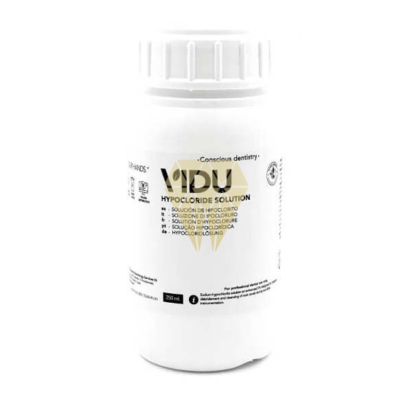 Hipoclorito de sodio para la irrigación y el desbridamiento del conducto radicular para su uso durante y después de la instrumentación.