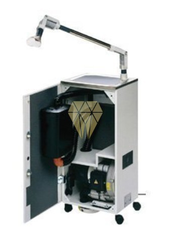 Aspiración de polvo insonorizada para un puesto de trabajo con brazo y campana.