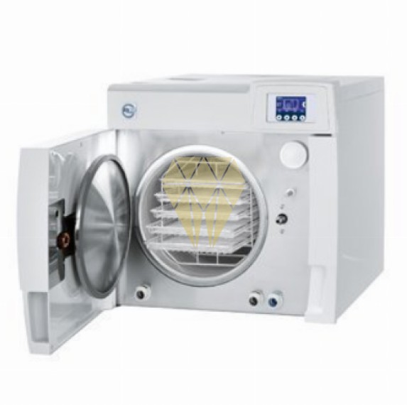 Autoclave con ciclos clase B según norma EN 13060. Con 5 bandejas en dotación y sensor de calidad de agua integrado.