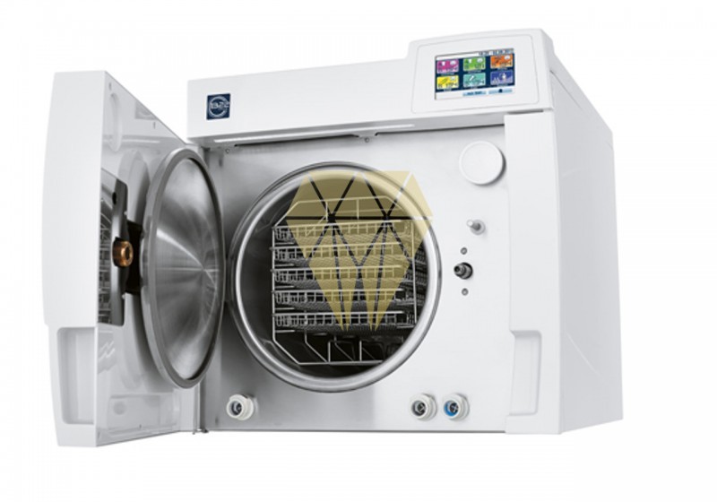Autoclave Futura de clase B que funciona con agua del grifo. Capacidad de la cámara de acero inoxidable de 28 litros. Autoclave con ciclos clase B según norma EN 13060. Depósitos de agua inspeccionables con sensor de calidad de agua integrado.