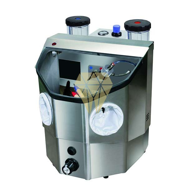 El chorro de arena Cosmos incorpora dos pistolas de microarenado similares a las empleadas en el modelo Constellation, creándose así un único y potente aparato que compatibiliza una pistola fija de Ø 3 mm, con herramientas de microchorreado, ahorrando el espacio y dinero que supondría la adquisición de dos máquinas por separado.