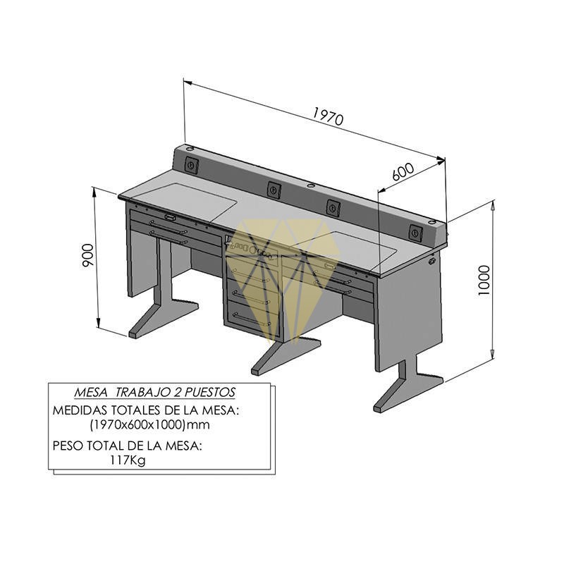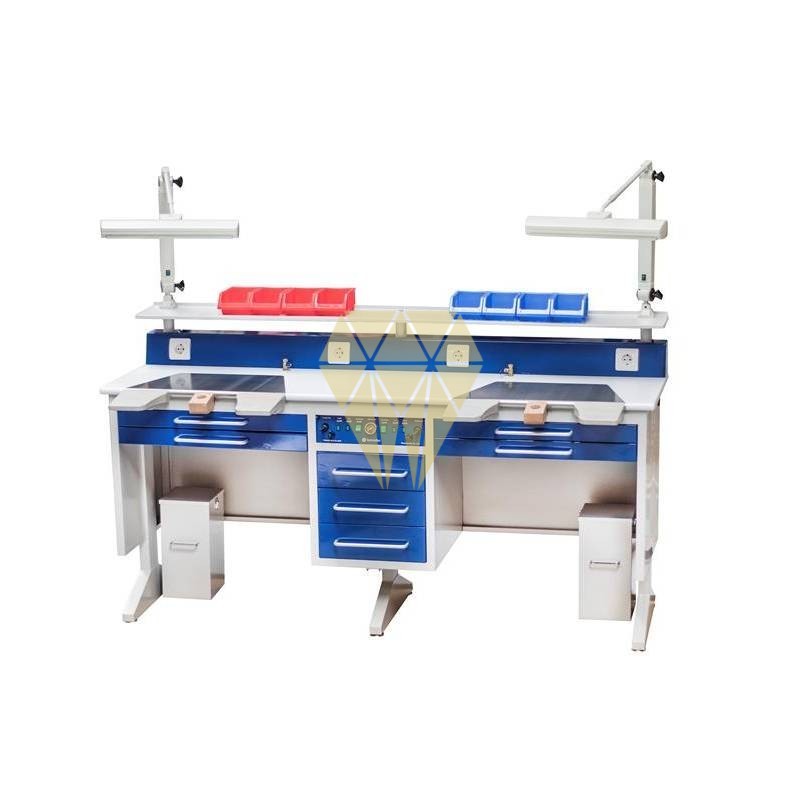 Mesa de Trabajo Doble para laboratorio dental construida totalmente en Acero.