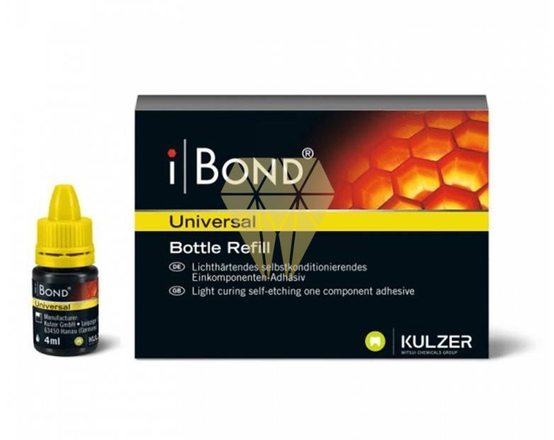 iBOND Universal es un adhesivo fotopolimerizable universal para uso en odontología restauradora adhesiva: Para cada técnica de aplicación: Técnica de autograbado: grabado, imprimación y unión en un paso. Técnica selectiva de grabado de esmalte: aplicación de ácido fosfórico sobre el esmalte