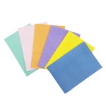 Servilleta plastificadas con tres capas para proteger al paciente durante el tratamiento dental. Están compuestas de 2 capas de celulosa y 1 de polietileno. Los baberos VIDU son fabricados con la materia prima proveniente de bosques controlados.