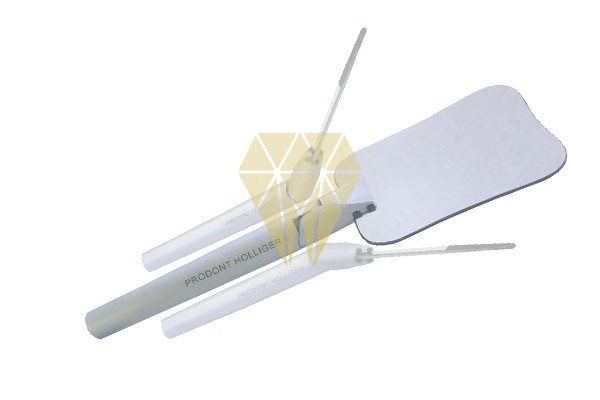 Mango de aluminio anodizado, de forma ligeramente cónica, para sostener espejos fotográficos de cristal. La parte superior orientable permite sacar fotos de diferentes inclinaciones sin tocar el espejo. Se pueden utilizar las dos caras de los espejos de doble cara.