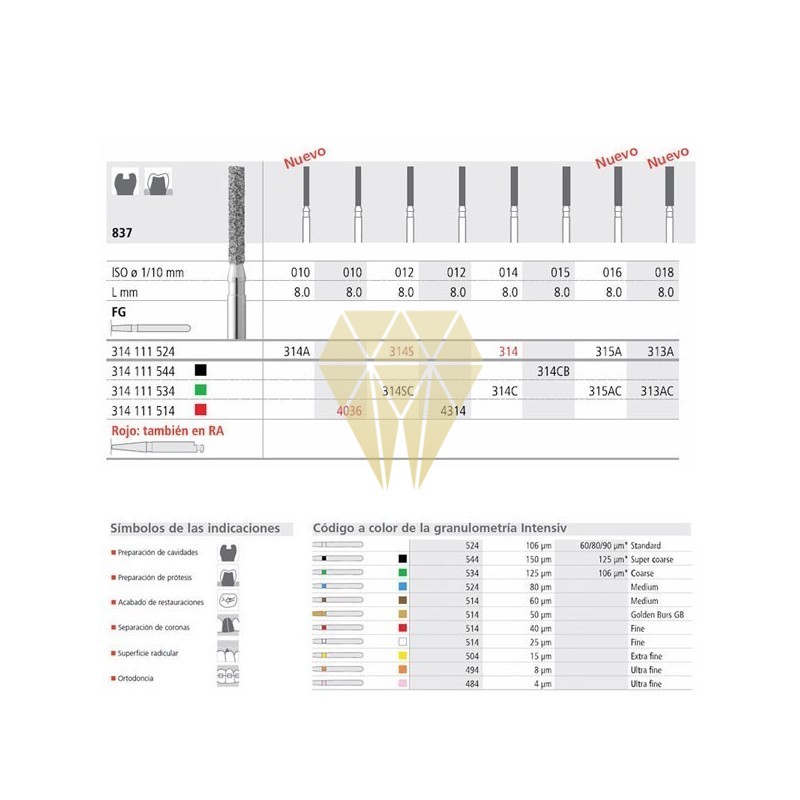 FRESAS DIAMANTE TURBINA F.G. 314/6 C 837.314.014 GRUESO 6 UND.