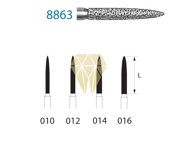 Instrumentos de preparación ISO: 103 - Revolución Máxima: 300000 rpm - Forma: LLAMA Diametro 014 - Mandril TURBINA FINO Tipo de Grano: FINO - Aplicación: Pulido Preparacion Tallado Bopt - Cantidad Embalaje: 5 ud