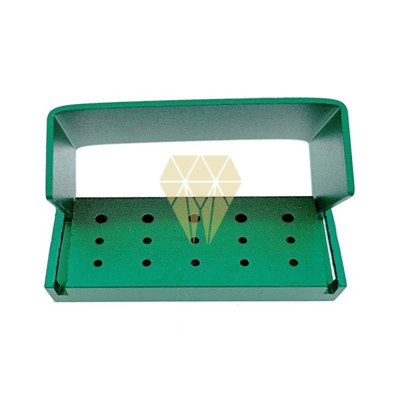 Este fresero cuenta con 15 hoyos para guardar o organizar las fresas durante un procedimiento: