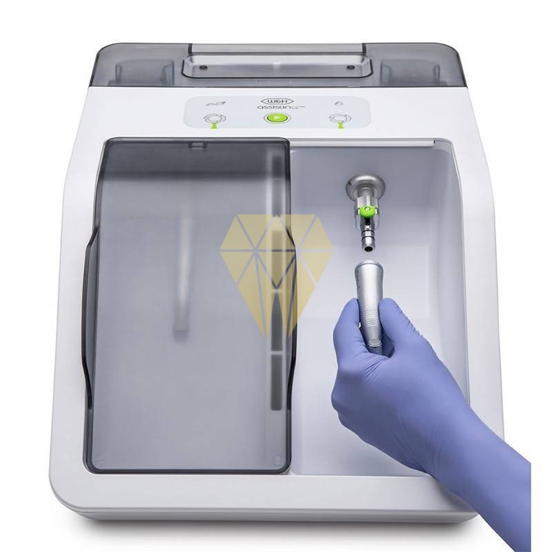 Lubricación en 10 segundos. Es la primer unidad de mantenimiento que estáequipada con dos cámaras de procesamiento que pueden utilizarse de forma alterna y que, en consecuencia, permiten cargar instrumentos de forma ininterrumpida. La unidad es capaz de procesar hasta 360 instrumentos por hora.