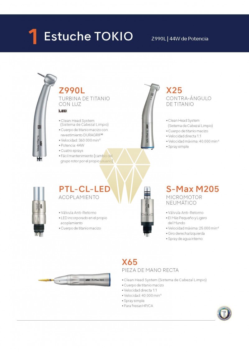 - MICROMOTOR NEUMÁTICO S-MAX M205. El más pequeño y ligero del mundo. Velocidad máxima 25.000 min. Giro derecha/izquierda. Spray de agua interno.
