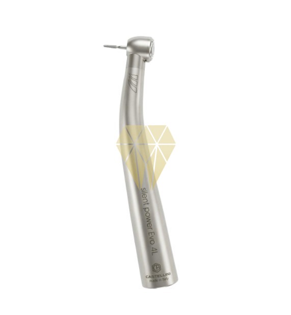 Turbina Silent Power Gold, empuñadura en titanio, para acople rápido MULTIFLEX , fibras ópticas, con rodamientos cerámicos, spray 4 orifícios (4+4 conductos).