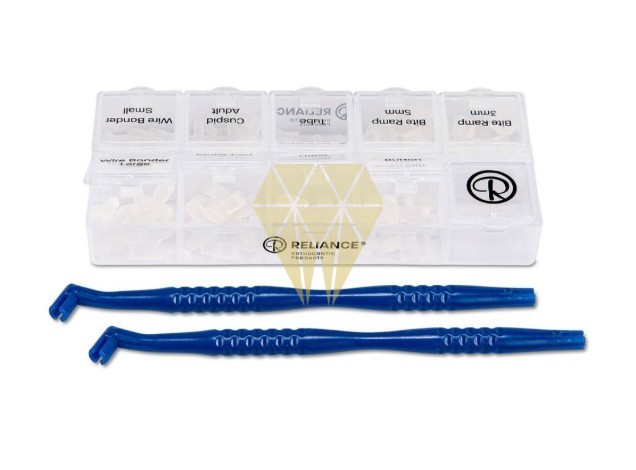 ReliaMold permite moldear auxiliares de composite directamente sobre los dientes. Los moldes son translúcidos y flexibles, facilitando la carga, fotocurado y desmolde del composite. Se llena el molde con un composite fotopolimerizable (se recomiendan GoTo, TKO o Flowtain), se coloca sobre el diente y se cura. Así, el auxiliar deseado queda formado y funcional al instante. Está diseñado como un producto desechable de un solo uso, con una excelente relación calidad-precioEl kit ReliaMold incluye: 12 Habit Control (RMH) 12 Cuspid Ramp (RMC) 12 Button Hook (RMBU) 12 Molar Tube (RMT) 12 Molar Pad (RMMP) 12 Bite Ramp 3mm (RMBR3) 12 Bite Ramp 5mm (RMBR5) 12 Wire Bonder 3mm (RMWBS) 12 Wire Bonder 4.5mm (RMWBL) 2 Mangos para pincel surtidos (BHA) 1 Caja de kit ReliaMold.